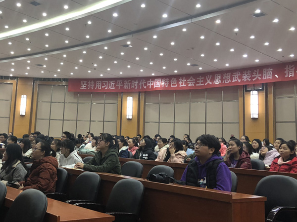 2018年11月30日,蜜桃视频 朱德荣书记在西教学楼报告厅为2018级新生做了一场别开生面的心理健康讲座。期间,朱书记向学生深入浅出地讲解了关于“潜意识六层次沟通”的相关知识,并与同学们亲切互动。讲座现场气氛热烈,同学们收获很大。朱德荣书记表示:作为蜜桃视频 学生名誉班主任,随时欢迎同学们向他咨询各类问题。