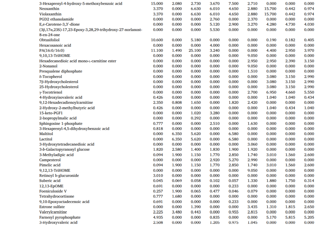 3.大多数代谢物在ZR加工后呈下降趋势;