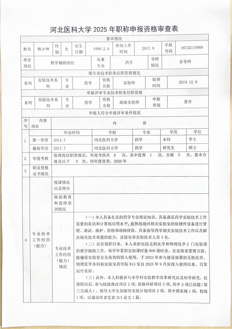 专业技术职务任职资格情况一览表-杨少坤