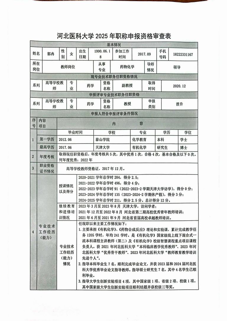 专业技术职务任职资格情况一览表-郭冉