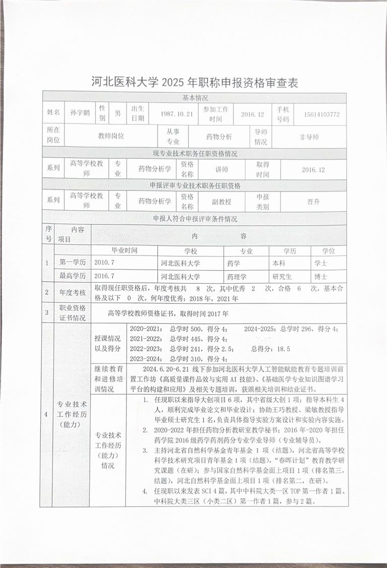 专业技术职务任职资格情况一览表-孙宇鹏